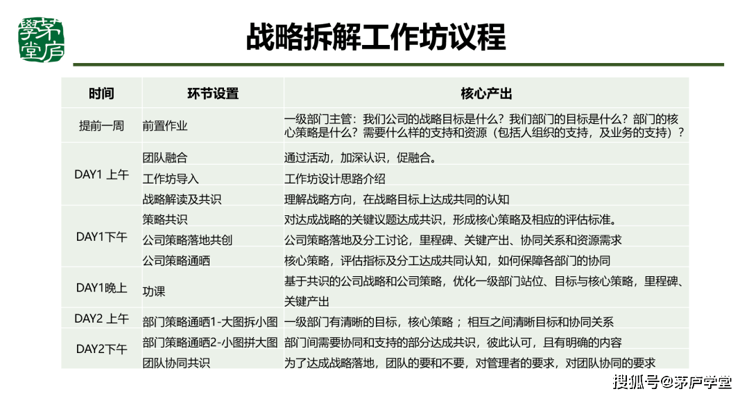 这里的战略拆解也叫战略解码,一方面对战略目标有清晰的理解,另一方面对于战略落地的关键路径和策略要通过群策群力找到关键任务、有具体策略落实到时间节奏和负责人。