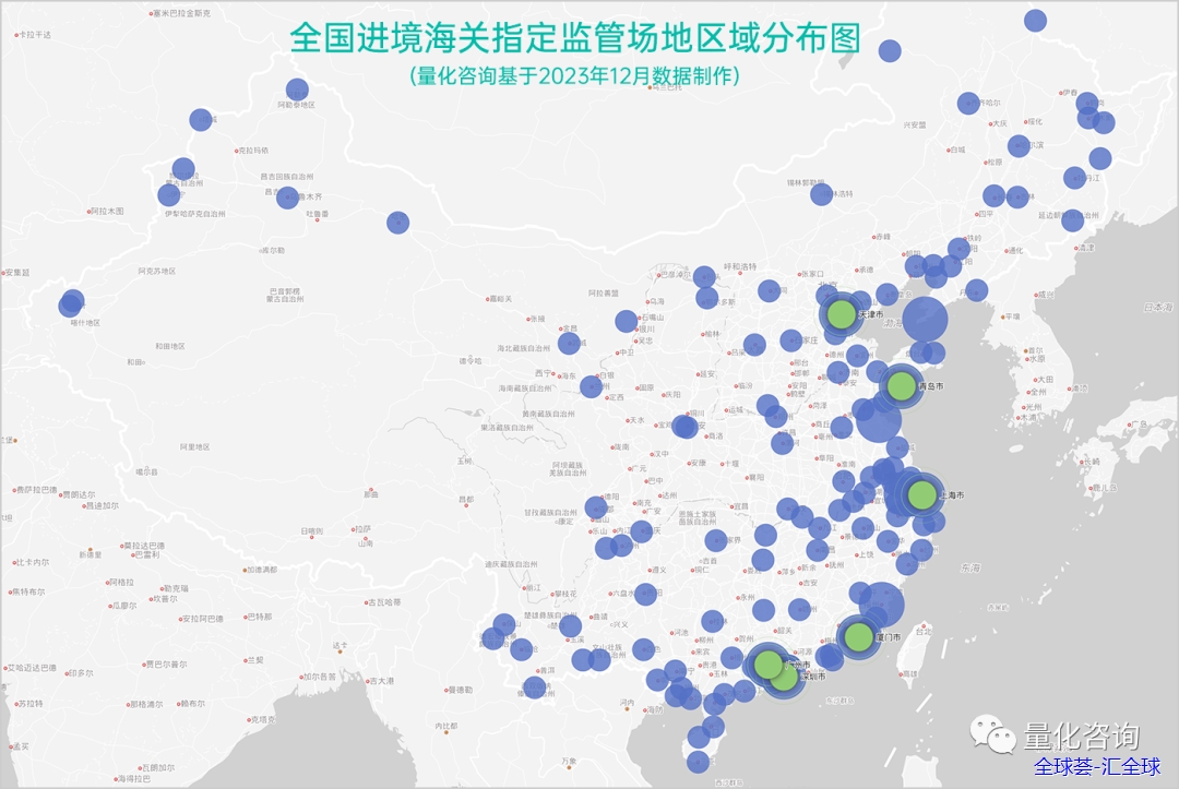 本分析报告是量化咨询基于海关2023年12月发布的进境水果、食用水生动物、冰鲜水产品、植物种苗、肉类指定监管场清单,2023年10月发布的进境粮食指定监管场地名单,2022年12月发布的进境原木指定监管场地名单及海关查询系统所得其他进境高风险动植物及其产品指定监管场地综合汇总数据制作,县区等均归并到地级市或地区维度。(海关查询系统中各类指定监管场所信息比各时间节点公布的清单总数上多20个,应该是数据还未更新,本报告基于以上数据制作,数据版权归属海关。数据在不同时间段或公布媒介上可能会有些差异,特此说明)