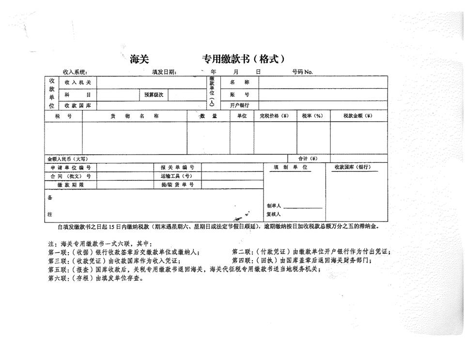 | 结果名称 | 海关税费专用缴款书 | 结果样本 | 海关税费专用缴款书.jpg |